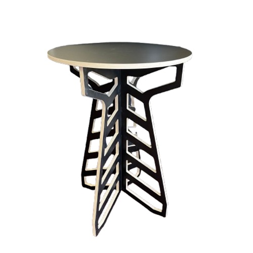 Black ply bar leaner with raw ply edges and distinctive cut out legs.