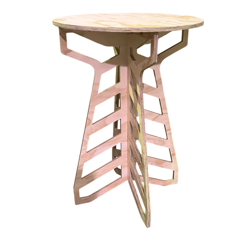 Natural ply bar leaner with raw ply edges and distinctive cut out legs.
